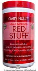 Gary Null's Red Stuff - 500 Grams Gary Null's New and Improved Red Stuff is a delicious and excellent source of nutrients derived from a wide variety offruits and berries. As it may often be difficult to obtain all of the required fruit nutrients from diet alone, Gary Null's Red Stuff was designed asnutritional insurance for supplementing a healthy andbalanced diet. Gary Null's Red Stuff is also a good natural source of antioxidants, enzymes, probiotics and fruit phytonutrients. Please enjoy Gary Null's delicious product as a part of a healthy lifestyle. Gary Null's Red Stuff is raw and all natural.Gary Null's Red Stuff contains 34 fruits, enzymesand probiotics. Gary Null's Red Stuff ismade from maqui berry, pomegranate and resveratrol.Gary Null's Red Stuff has an ORAC Value of 10,000+.Gary Null's Red Stuff is a vegan and vegetarian friendly product. Gary Null's Red Stuff: The Power of Fresh Fruits and Whole Foods. About Gary Null Time magazine called him "The New Mr. Natural." My Generation magazine dubbed him one of the top health gurus in the United States. For over 35 years, Gary Null has been one of the foremost voices of the health movement. Through his New York Times Bestselling books, documentaries, and daily radio show Gary has continued to be a strong voice for the consumer, standing up against big pharmaceutical corporations. Gary has also exposed the massive drugging of children in our schools, the medicinal abuse of seniors, and the unnecessary and overuse of X-Rays. In addition, he has conducted original investigative reports on the suppression of alternative therapies. He has also challenged the diseases produced by an unhealthy diet. In this regard he has publicly debated spokespersons for the meat, dairy, and sugar industries.